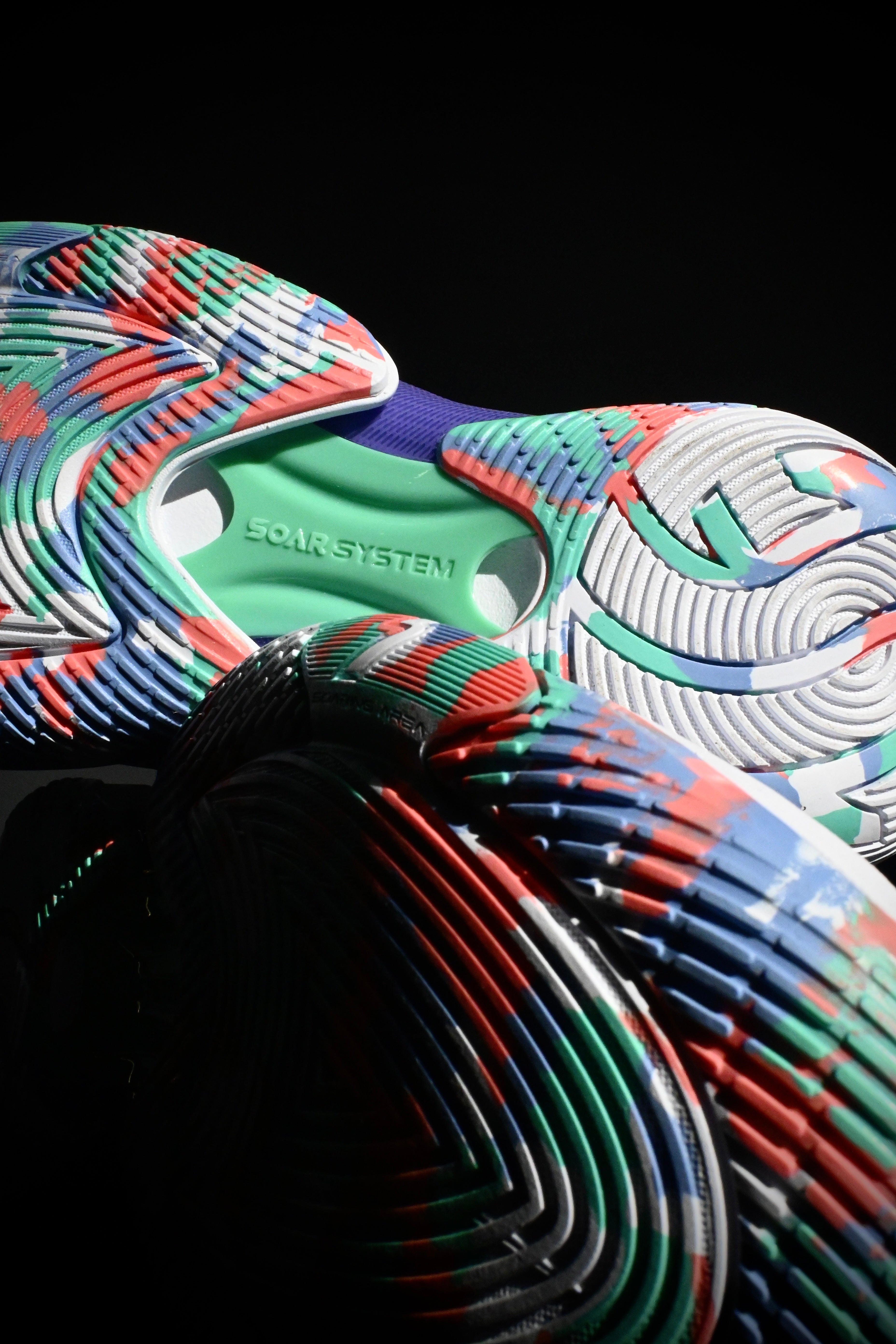 - The SOAR PLATE medial plate is made of a new carbon-injected material (Evonik Nylon 12) that is lighter than conventional materials and offers improved torsional resistance. This elastic support, visible in the medial area, continues to the forefoot to return even more energy during running and jumping.