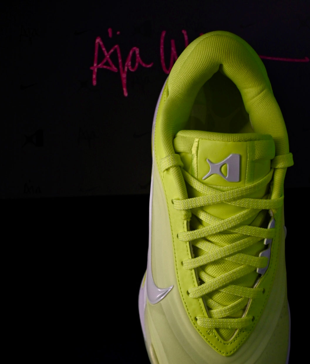- The recognizable logo is featured on the tongue and also under the sole, plus the heel is enriched by A'ja's signature.